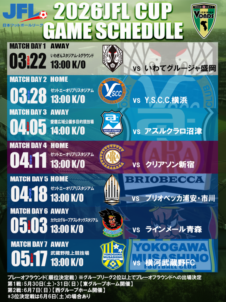 このたび、【2026JFL CUP】の全日程が発表となりましたのでお知らせいたします。