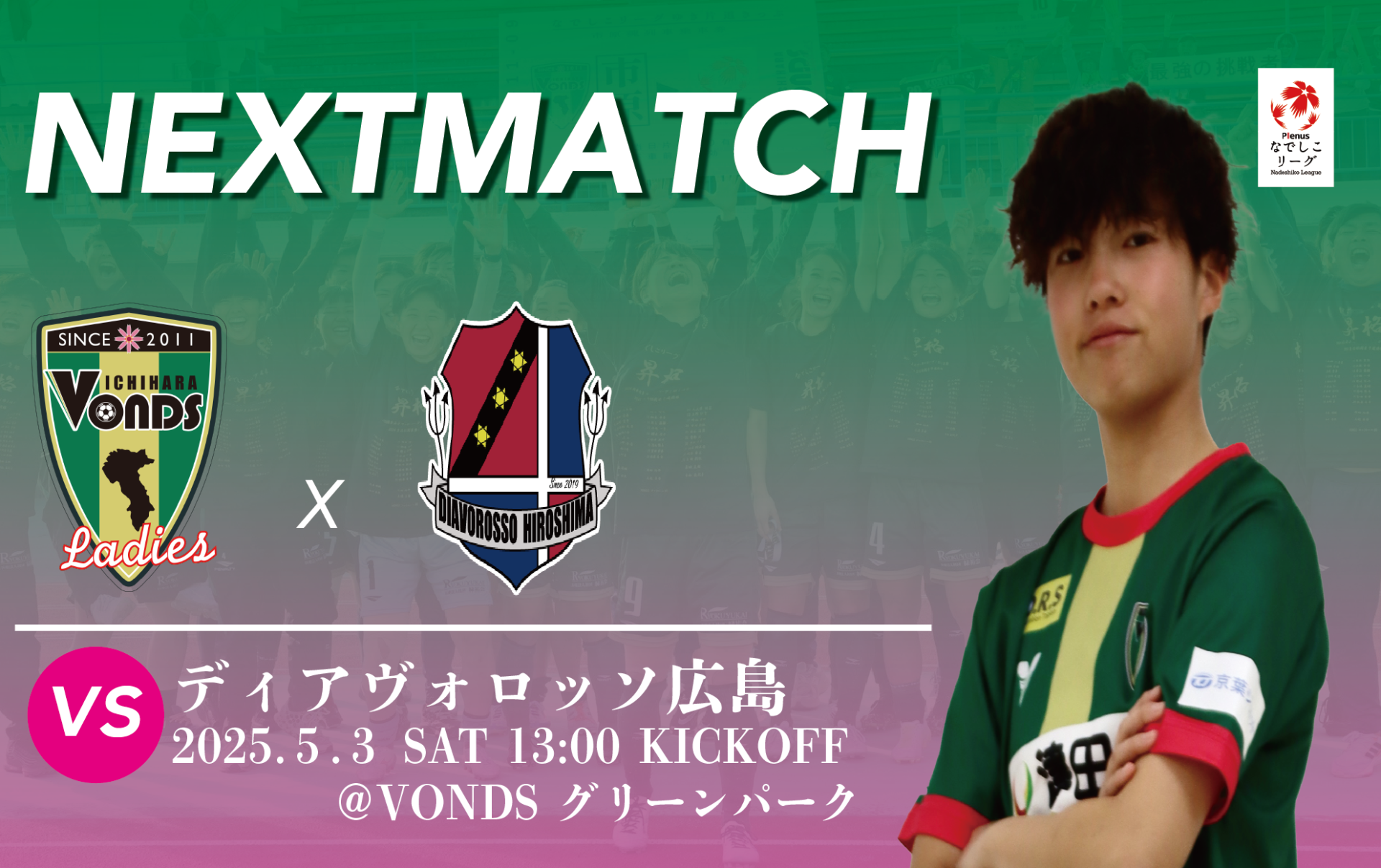 5/3(土)に開催予定の【2025 プレナスなでしこリーグ2部 第8節ディアヴォロッソ広島戦】についてお知らせいたします。