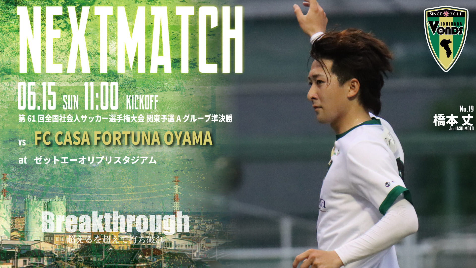 6/15(日)に開催予定の【第61回全国社会人サッカー選手権大会関東予選 Aグループ準決勝 FC CASA FORTUNA OYAMA】戦についてお知らせします。