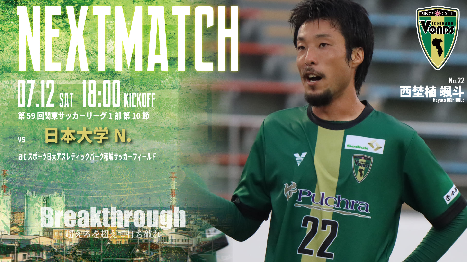 7/12(土)に開催予定の【第59回関東サッカーリーグ1部 第10節 日本大学N.】戦についてお知らせします。