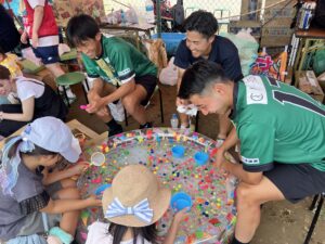小さなお子様から大人の方まで多くの方々に参加していただき、行列が出来るほどの盛り上がりをみせ選手及びスタッフもご参加いただいた方々と共に楽しみ常に笑顔で溢れる素敵なひとときとなりました。