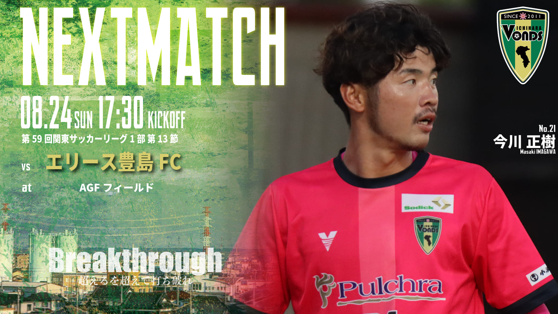 8/24(日)に開催予定の【第59回関東サッカーリーグ1部 第13節 エリース豊島FC】戦についてお知らせします。