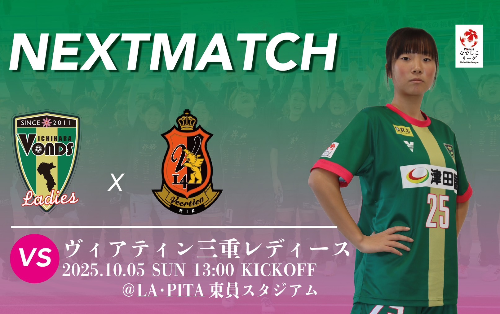 10/5(日)に開催予定の【2025プレナスなでしこリーグ2部 第20節 ヴィアティン三重レディース戦】についてお知らせいたします。