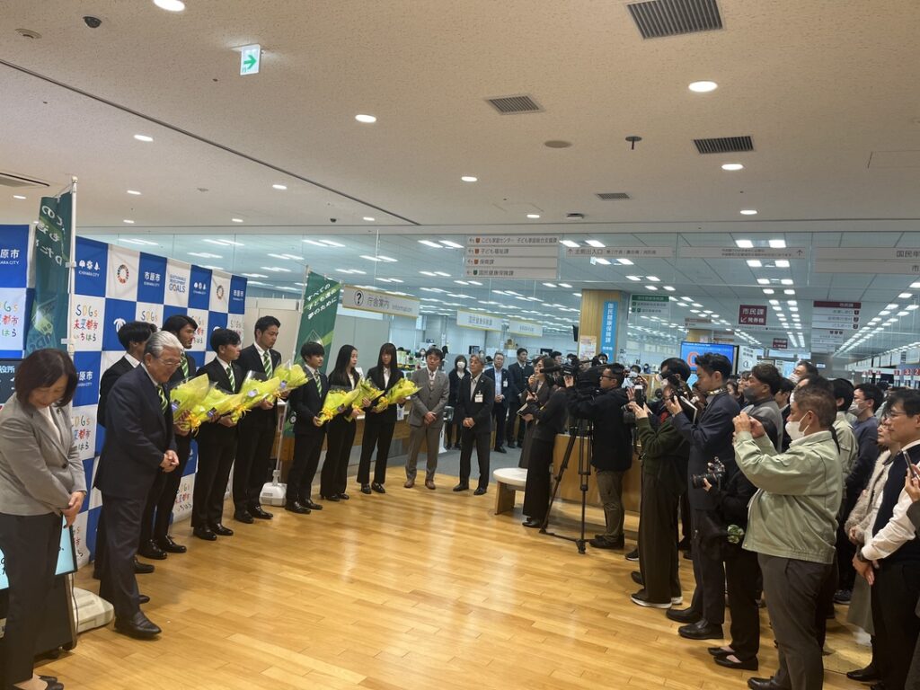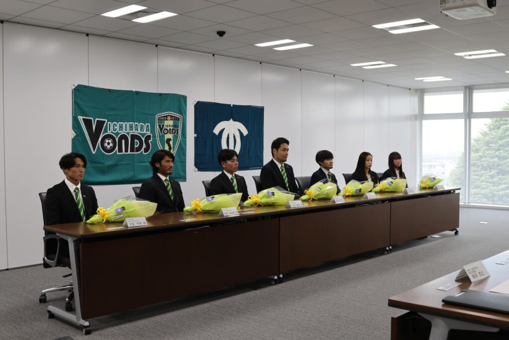市役所職員の皆さま、そして市原市民の皆さまに温かく迎えていただき、昇格までの道のりや来シーズンから参画するJFL、なでしこリーグ1部への意気込みを語りました。さらに小出讓治市原市長からも激励のお言葉をいただきました。