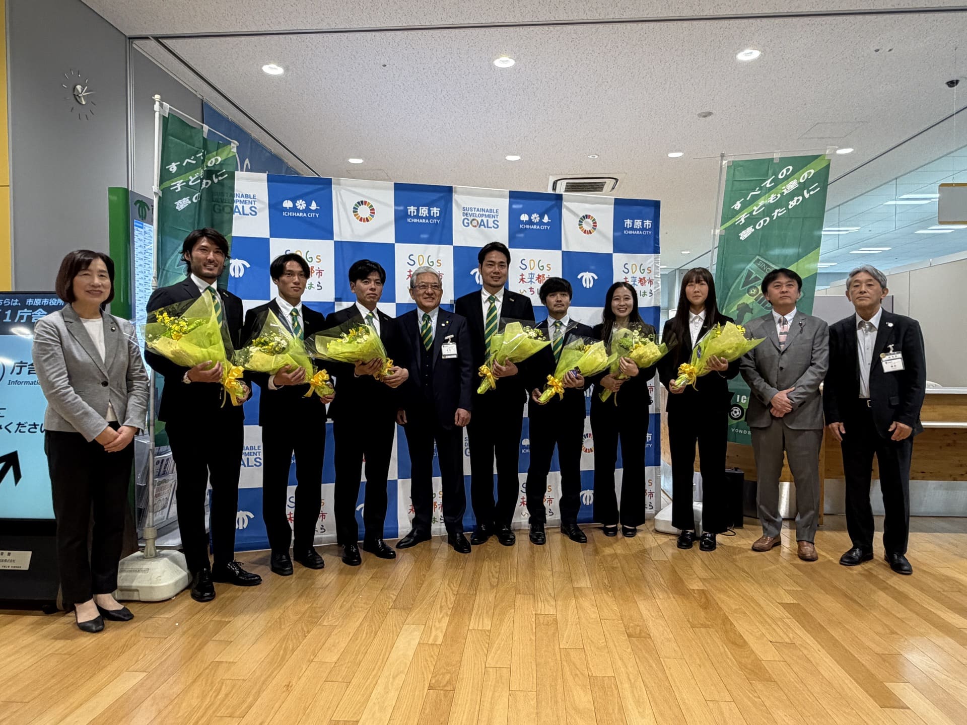 表敬訪問の前には、市原市役所 第1庁舎1階市民プラザにて、JFL昇格・なでしこリーグ1部昇格セレモニーを開催いただきました。