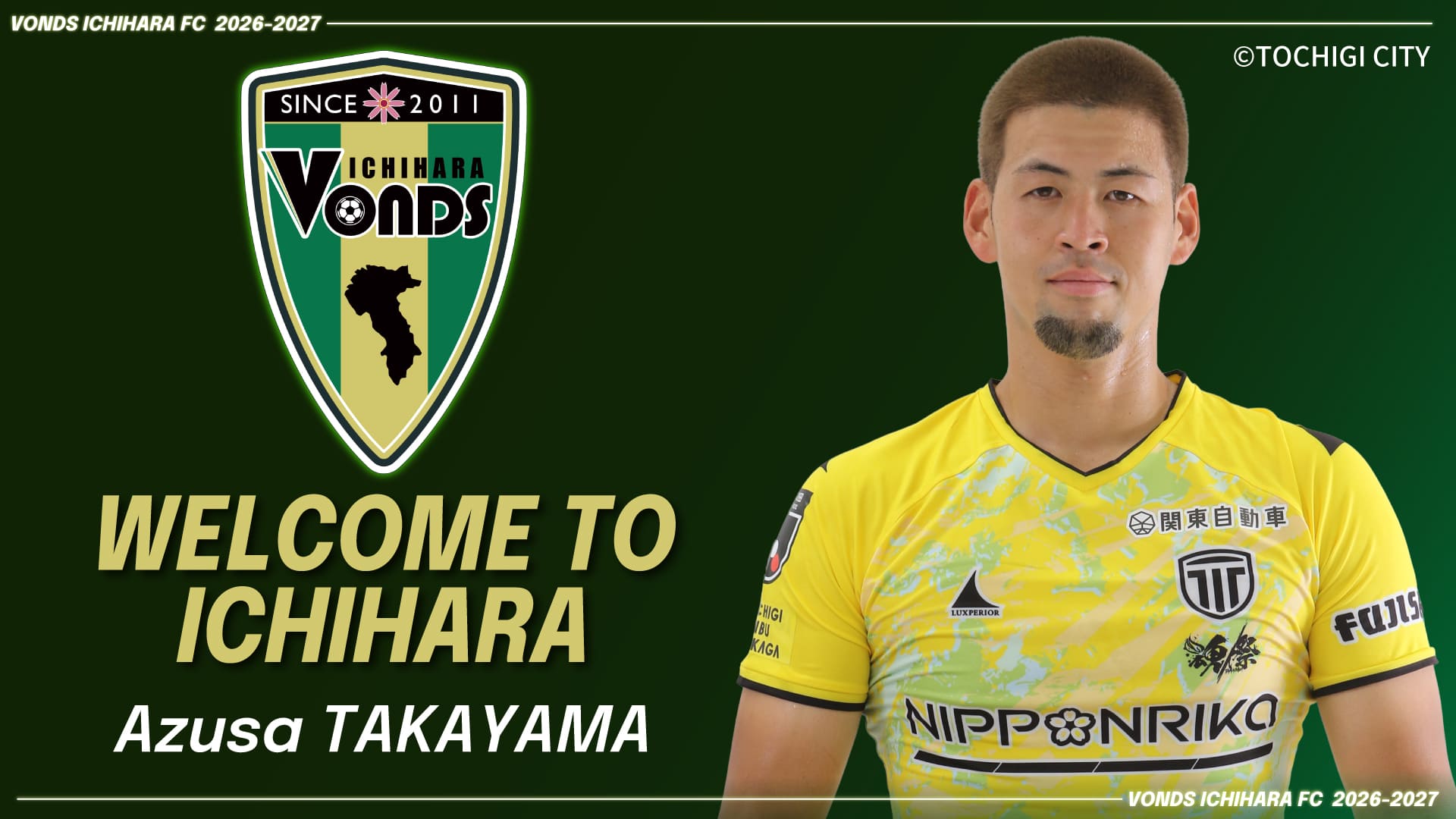この度、高山梓選手が栃木シティ(J2)より完全移籍で加入することとなりましたので、お知らせいたします。